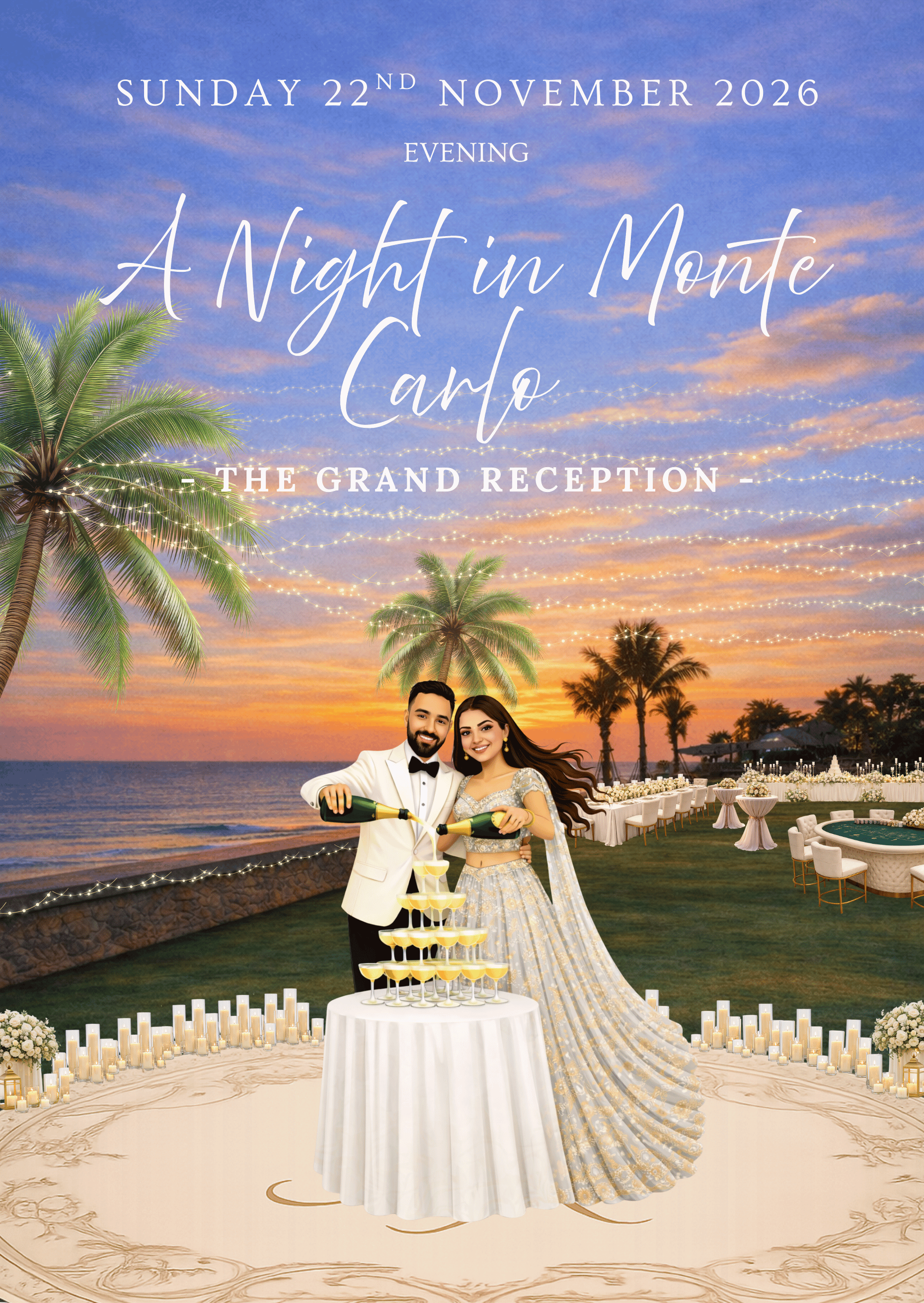 As night falls, we gather for the grand reception inspired by the timeless allure of Monte Carlo and the South of France, set within an atmosphere of refined indulgence. As the evening unfolds, music and energy fill the space, performances take the stage, and laughter carries late into the night. Between courses and conversations, guests may find themselves drawn into moments of playful thrill and light-hearted chance — where fortune favours the bold — before the celebration flows effortlessly into dancing, joy, and memories made well into the early hours of the morning.
